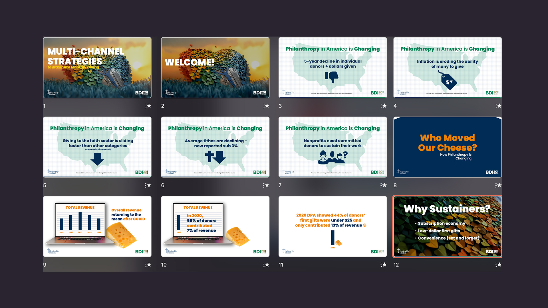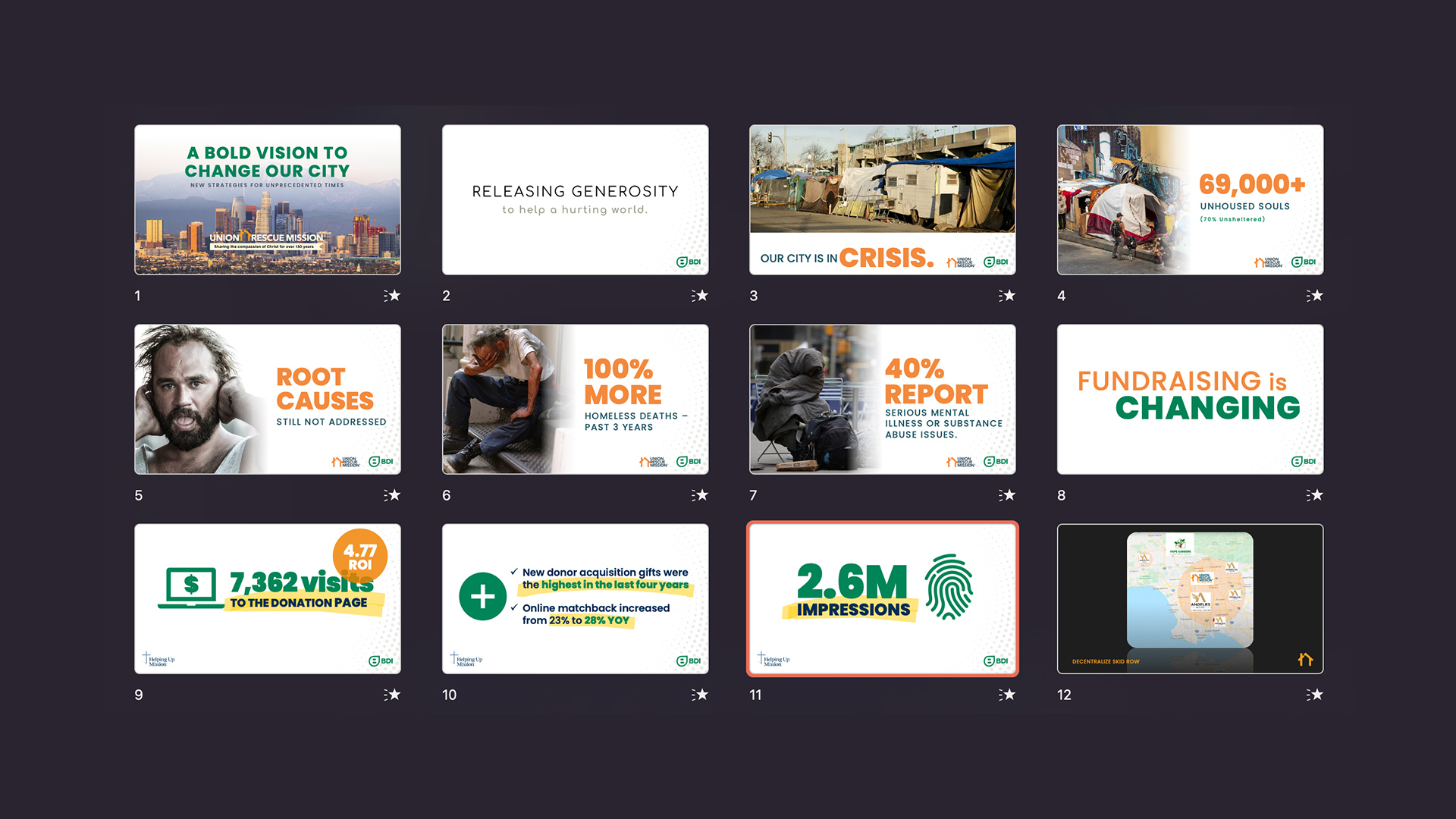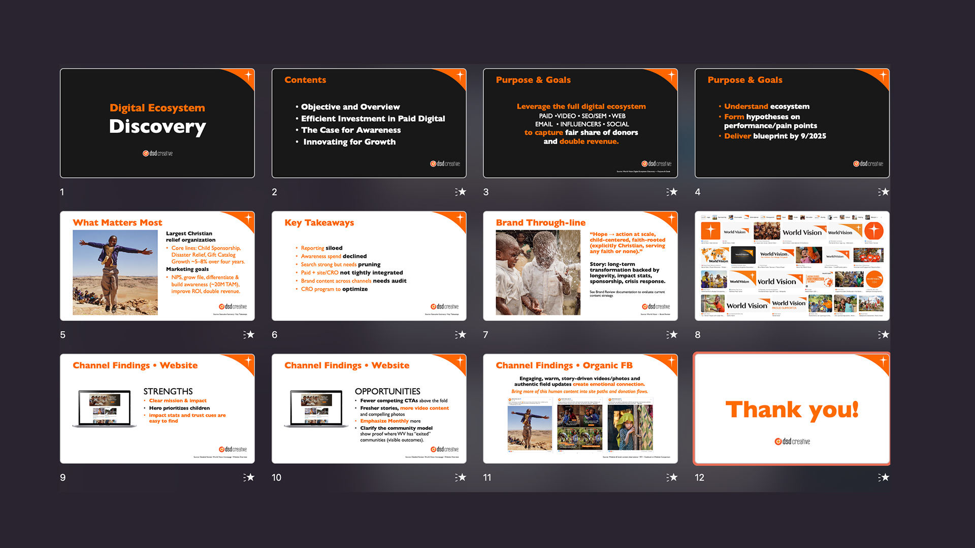Big ideas can get overwhelming, and often slide decks are messy, inconsistent, and have way too much info per slide. At DSD, we know how to strip away the noise and build clear, persuasive stories that flow and connect.