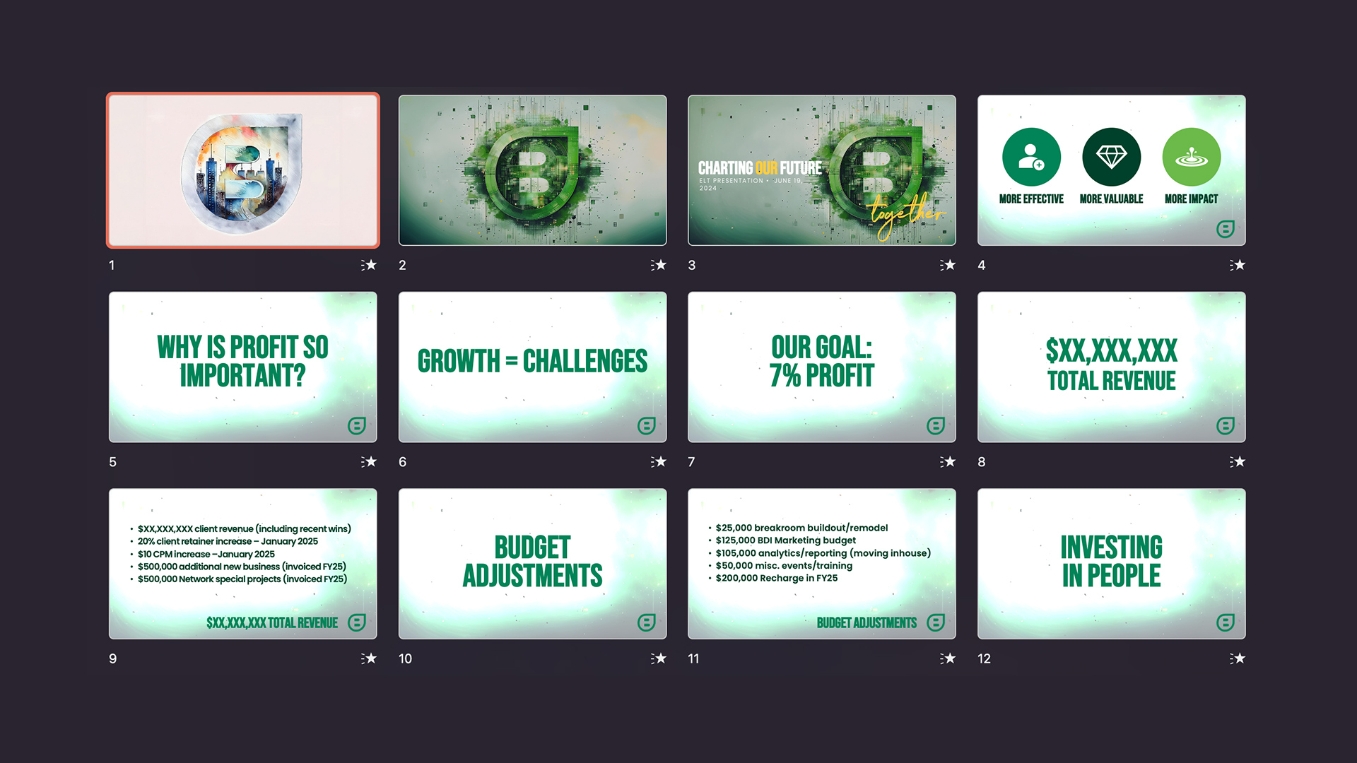 We can take your complicated and make it compelling. From pitch decks that win over clients to concept presentations that sell the vision, we use polished Master Slides, purposeful animations, and striking imagery to keep audiences hooked, spark buy-in, and move ideas forward with impact.